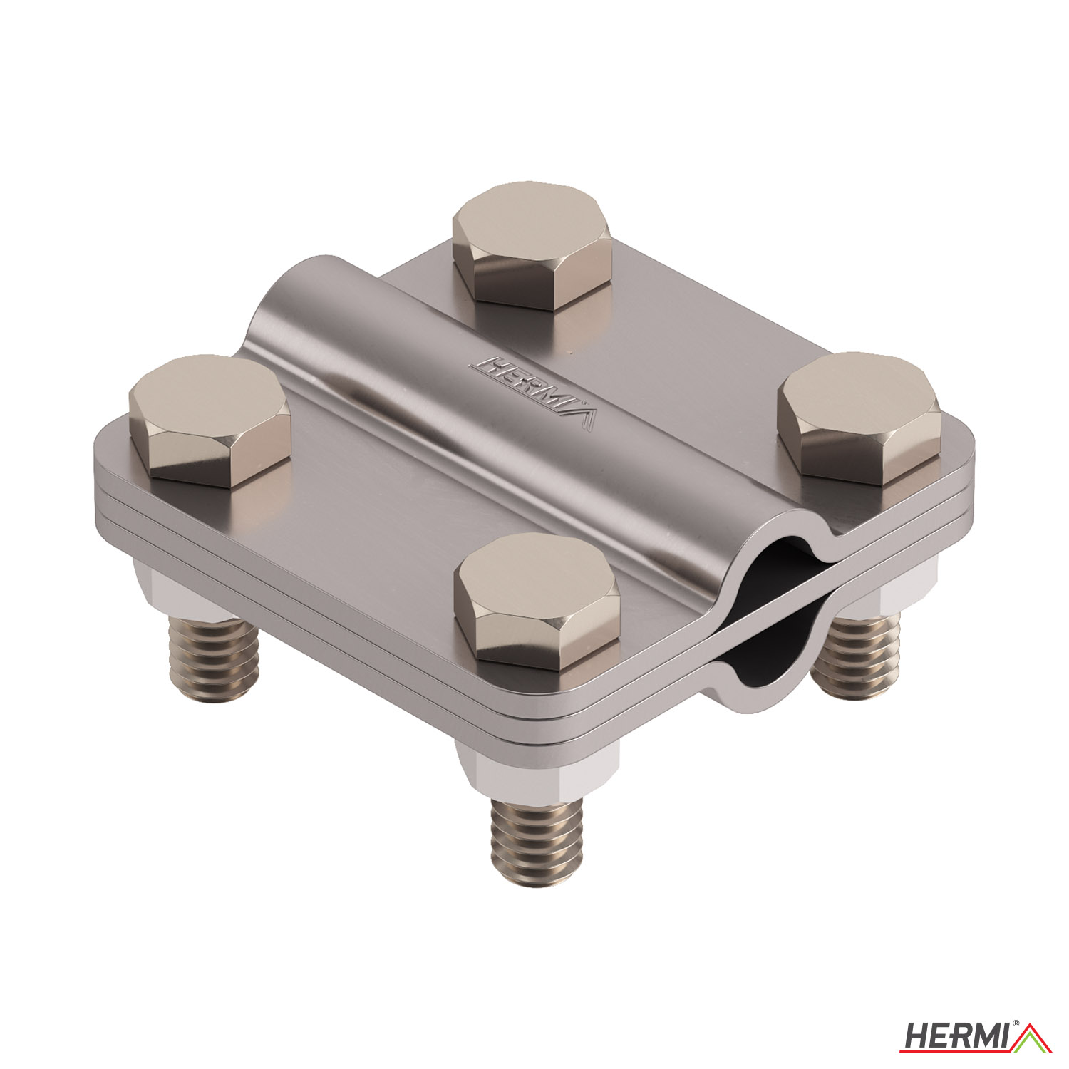KON07 bilincs, amely 3 db 58 mm x 58 mm-es lemezből, csavarokból és M8-as anyákból áll, 8-10 mm és 20 mm méretű kerek vezetékek talajban és felette érintkező kötések kialakítására szolgál.