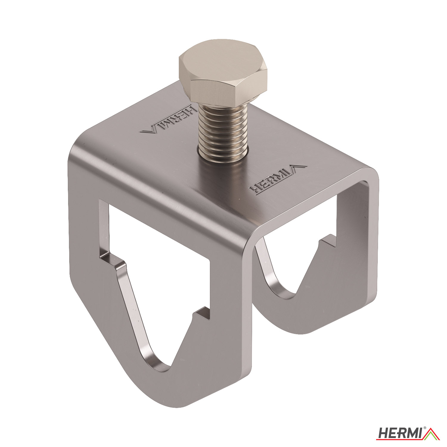 Földelő rúd csatlakozó kapocs (max. Φ20 mm), leágazó vezető, kerek (Φ8-10 mm) vagy lapos (3,5*30mm). Anyaga rozsdanentes acél.
