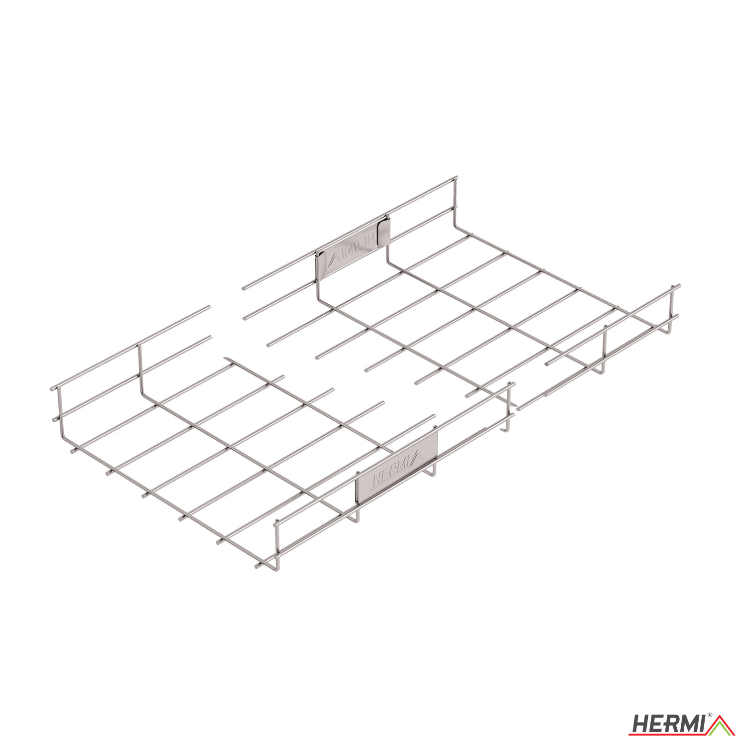 KPM hálós kábeltálcák 60 mm magassággal és 300 mm szélességgel, rozsdamente anyagból, ( valamint horganyzott acélból,  vagy kívánt színre porfestve is rendelhető ). A kábeltálca hossza 3000 mm. A hálós kábeltálcák a falra vagy a mennyezetre rögzíthetők megfelelő NKP-SNT konzolokkal és SPN01 bilinccsel, NKP-SNTM (csavar nélküli rögzítés a konzolra) vagy NKP-NKM 60 (csavarozás nélküli rögzítés a konzolra). A hálótálcák összeillesztése az SP01 bilinccsel, a különböző könyökök/elágazások kialakítása pedig az SPN02 bilinccsel történik.