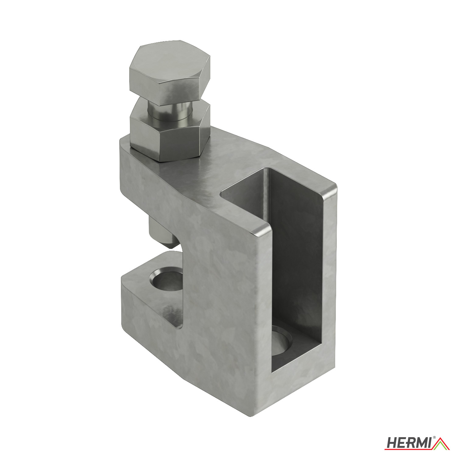 Nagy teherbírású csatlakozóelem, amely M10 csavarral kombinálva acélgerendákra (I-, T-, U- és szögacél gerendákra) szerelhető. M8 menettel.