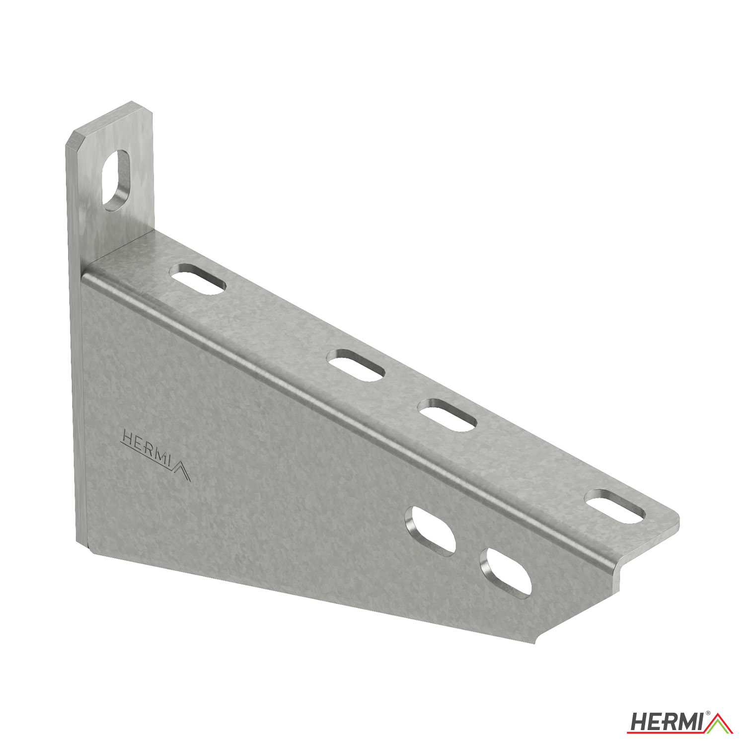 Ez a hegesztett fali konzol kábeltálcák és kábellétrák falra szerelésére szolgál. A falra szerelhető rögzítőelemek használata a fal anyagától (beton, tégla stb.) függ. A konzolok közötti ajánlott távolságot a terhelési diagram alapján határozzuk meg.