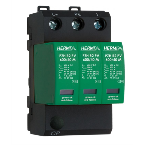 A PZH R2 PV a 2-es típusú villám- és túlfeszültség-levezetők az EN 61643-11 és az IEC 61643-11 és az UTE C 61-740-51 szerint. Ezeket a levezetőket az LPZ 1-2 határain (az IEC EN 62305 szerint) a Villámvédelmi Zóna Koncepcióban ajánljuk fotovoltaikus rendszerek pozitív és negatív gyűjtősíneinek potenciálkiegyenlítésére, valamint a légköri kisülések során keletkező tranziens túlfeszültség kiküszöbölésére, ill. váltási folyamatok. Az L+, L- és PE ​​sorkapcsok közé kapcsolt bizonyos varisztor szektorok belső szakaszolókkal vannak felszerelve, amelyek akkor aktiválódnak, amikor a varisztor meghibásodik (túlmelegszik). Ezeknek a szakaszolóknak az üzemállapot-jelzése részben vizuális (a jelmező elszíneződése), részben pedig távfelügyelet (potenciális szabad érintkezőváltással - csak MS típusok). Az M jelölés a kivehető modullal rendelkező konstrukció típusát határozza meg.