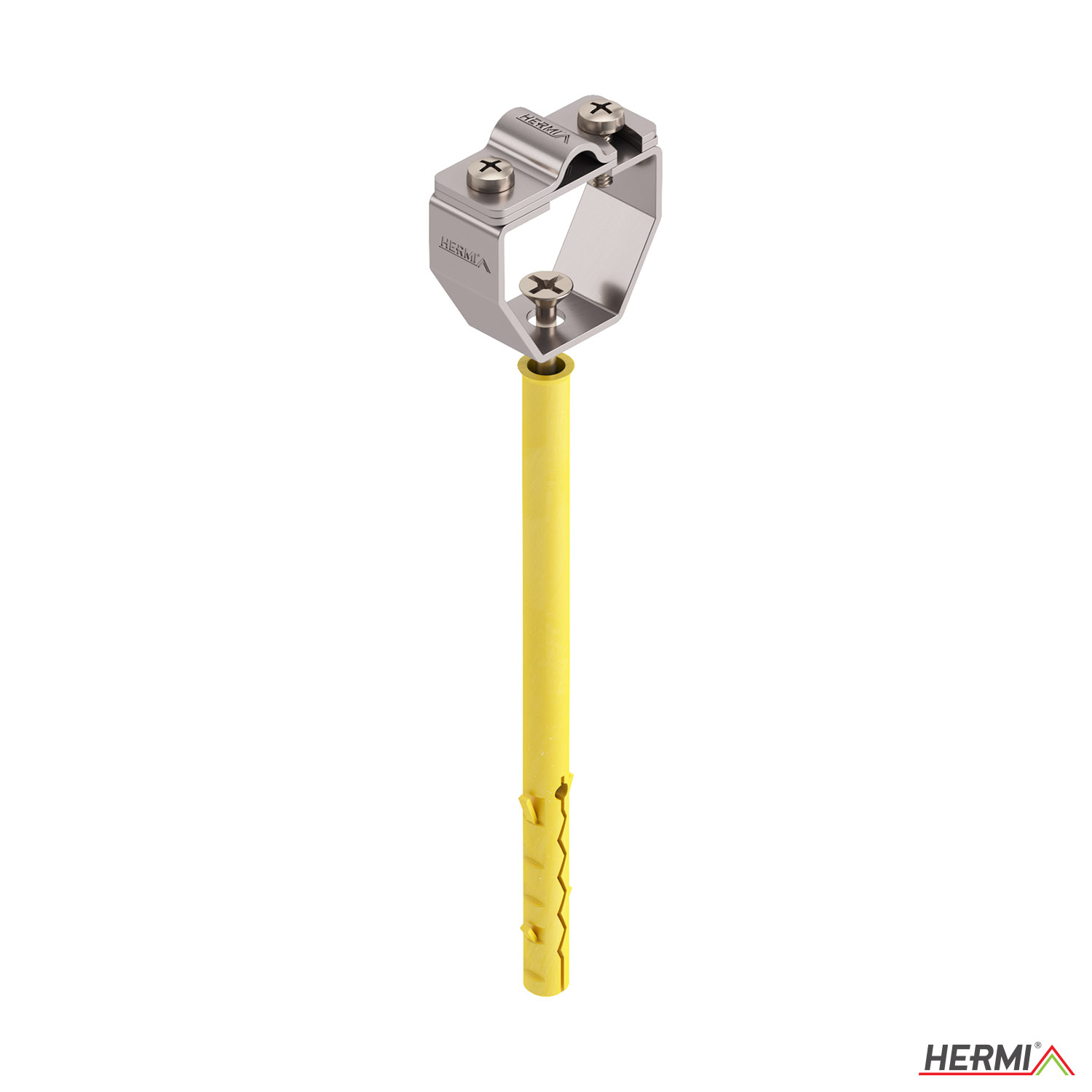 A rozsdamentes acélból készült ZON01 fali vezetékrögzítő 100 mm-es szigetelésű üreges falakhoz, 160 mm csavarral és Φ10 mm-es fali tiplivel, a vezeték rögzítése csavarozással történik.